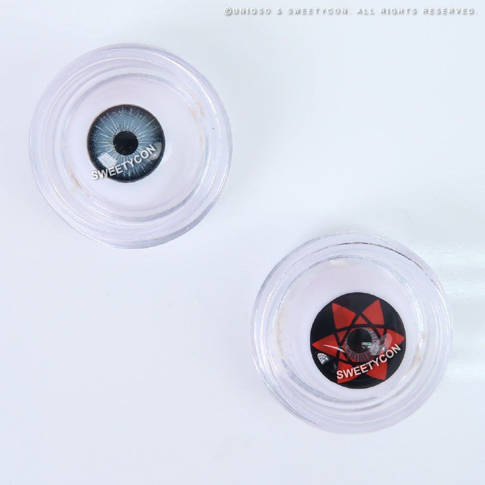 Transform into your favorite Naruto character with Sweety Sasuke Mangekyo Sharingan lenses! These cosplay colored contacts will bring your costume to life, giving you a more realistic and authentic look. Perfect for daring and adventurous cosplayers, step into the world of Naruto and unleash your inner ninja with these lenses.